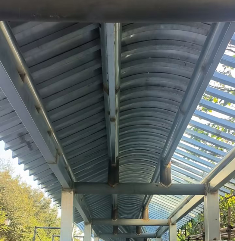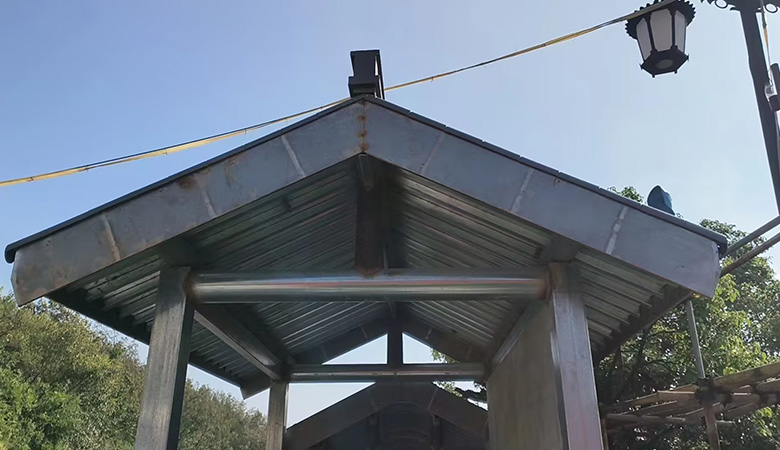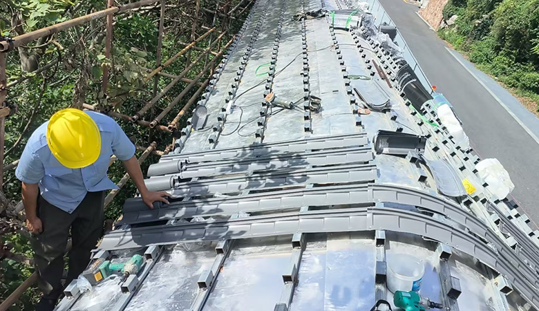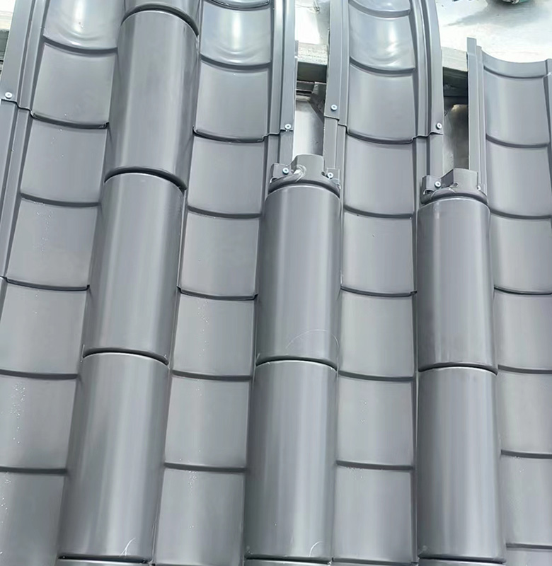 此次项目中,我公司大胆创新,采用了全新研发设计开模的铝合金仿古金属瓦。这种独特的材料不仅在外观上与茅山景区的古朴风格完美融合,为景区增添了一道亮丽的风景线,更在实用性方面表现出色。铝合金仿古金属瓦具有耐腐蚀、耐磨损、防水防火等优良特性,能够有效抵御各种恶劣天气,为游客提供安全、舒适的候车环境。